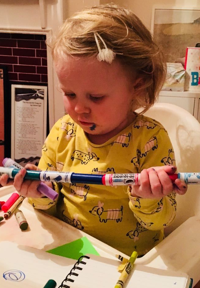 Chunky chalks – we gave Daisy a set of chunky chalks which she enjoys using on the patio and on pavements where we chalk together, making and copying patterns.