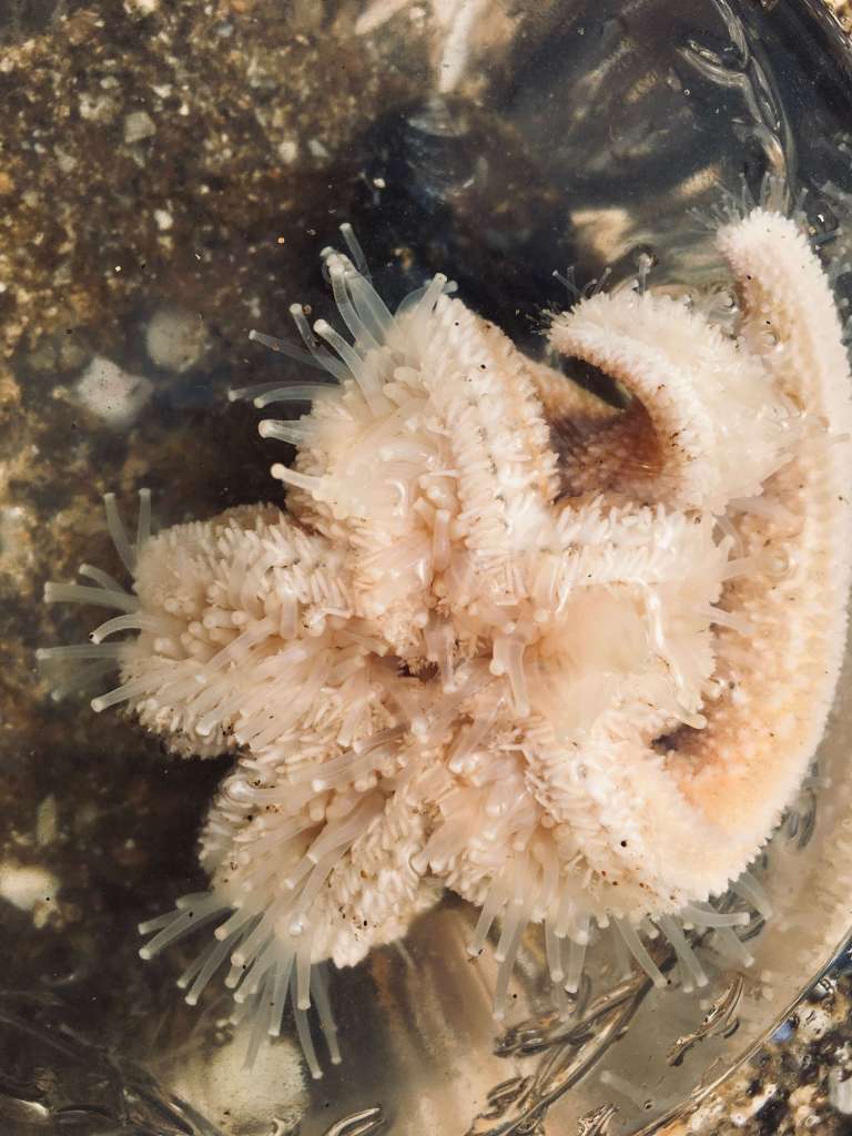 As we moved from pool to pool we were lucky enough to spot the occasional starfish, prostate where low water had deposited them, waiting out the hours before the next high tide. We saw no jellyfish or hermit crabs on this occasion but we did discover a fat sea anemone waving its myriad tentacles at unwary passing sea creatures.